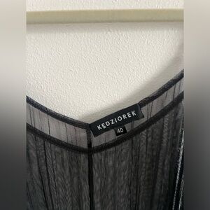 Kedziorek Pleated Black Sheer Midi Dress, size 40, light wear, excellent condition. Beautiful black pleated and paneled sheer mesh net dress. Lightweight and airy, perfect to put over a slip or even a bathing suit