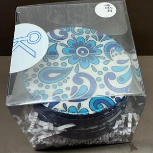 Kee Concept and Design Coasters New Set of 6 Round Blue Paisley Floral Motif