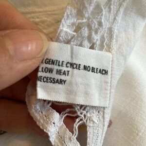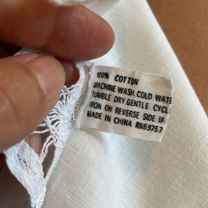Keeco white cotton table runner with floral embroidery & Battenburg lace edges & in the middle
