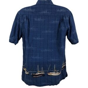 Keeler Bay Nautical Theme Ships Boats Short Sleeve Shirt blue multi Men’s Size M