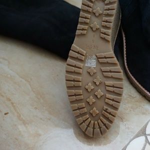 Suede upper/genuine shearling and leather lining/rubber sole.