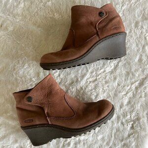 Keen Akita Brown Suede Leather Ankle Booties Wedge Heel Boots Size 6