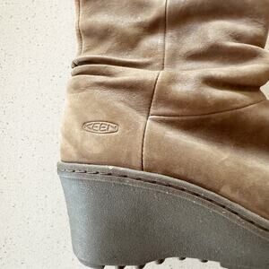 Keen Akita Dark Taupe Leather Wedge Heel Pull On Mid Calf Slouch Boots Size 6.5