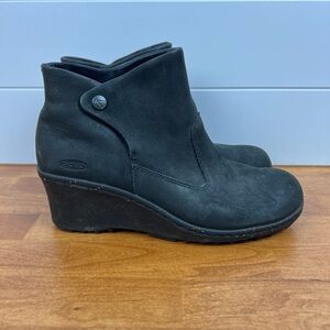 Keen muted black/gray wedge booties in excellent like new condition. Women’s size 9. Snap side closure slip one. Super cute for every day wear
