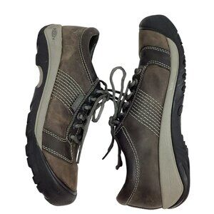 Keen shoes, men's casual shoes, leather lace-up, brown sneakers, everyday shoes, outdoor shoes, comfortable shoes, men's size 9.5, brown leather shoes, Keen footwear, men's walking shoes, durable shoes, versatile shoes