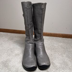Keen Bern Baby Tall Riding Boots Women’s 7 Gray Leather Zipper Wedge Heels