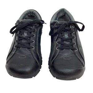 sneakers, casual shoes, leather footwear, black sneakers, women's shoes, Keen shoes, lace-up sneakers, comfortable walking, size 8.5, daily wear, outdoor shoes, rubber sole, sporty style