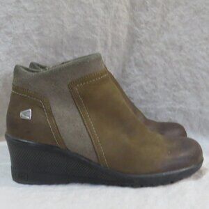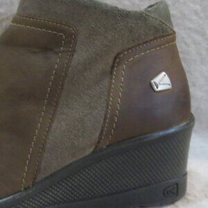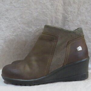 Keen Brindle Women Ankle Leather Boot Wedge Zip Bootie Size 7.5 Brown