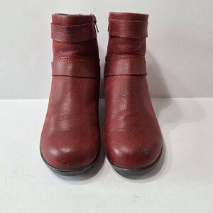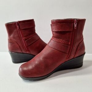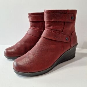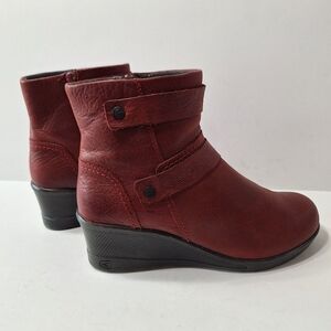 Keen Burgundy Leather Side Zip Ankle Wedge Boots Size 7.5