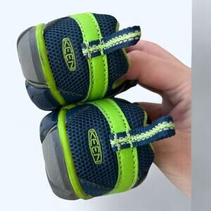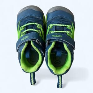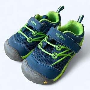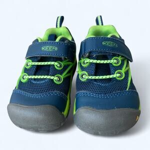Kid's Keen Chandler CNX trail shoes in navy & green. Child's size 6. These are in excellence preowned condition with no signs of wear except a few marks on the soles.