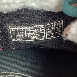 waterproof boots, women's winter boots, Keen footwear, lace-up design, faux fur lining, snow boots, size 6.5, brown boots, hiking boots, leather boots, patterned boots, cold weather boots, durable sole