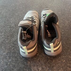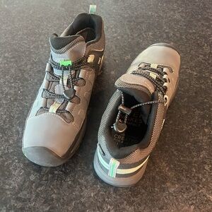 Experience the perfect blend of style and functionality with Keen's gray sneakers, designed for optimal comfort and durability. These sneakers feature a robust construction with protective toe caps and a reliable lacing system, making them ideal for outdoor adventures. The dark-colored soles ensure excellent traction, providing stability on various terrains. Size BIG BOY 6 youth has some minor wear in excellent condition