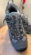 Pre-owned. Durable athletic shoes by Keen. Features gray and blue design. Ideal for outdoor activities. Good condition