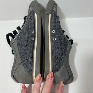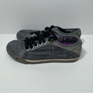 Gently worn women’s size 7 keen grey casual sneakers. Please review all photos for any signs of wear-pictured as is. Disclaimer: Any items with any wear/staining has not been treated, and unsure of ability to remove/treat condition. Comes from a smoke free home, bundle with other items to save & minimize shipping cost.