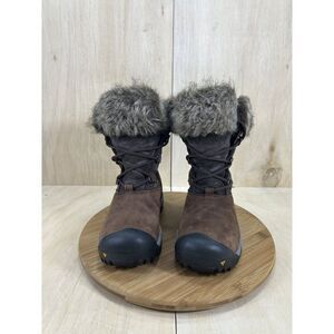 Keen Helena Brown Leather Waterproof Faux Fur Insulated Winter Boots 6.5
