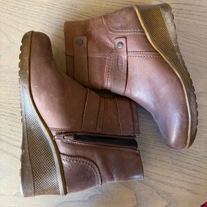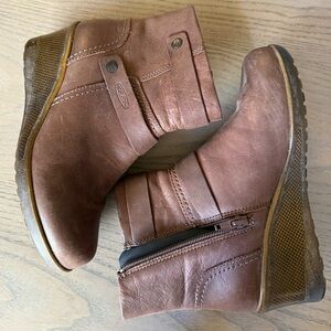 Keen Kate Brown Leather Ankle Wedge Booties - Size 6.5