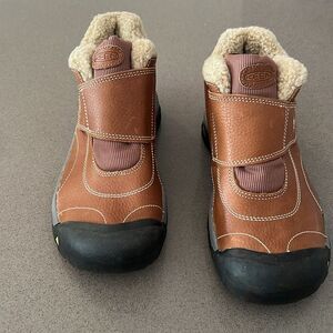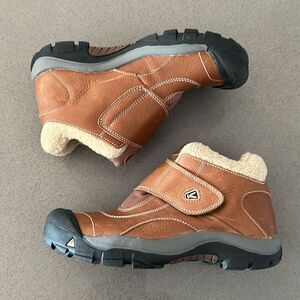 Keen Kids' Brown Leather Kootenay Winter Boots Faux Fur Lining Youth 6