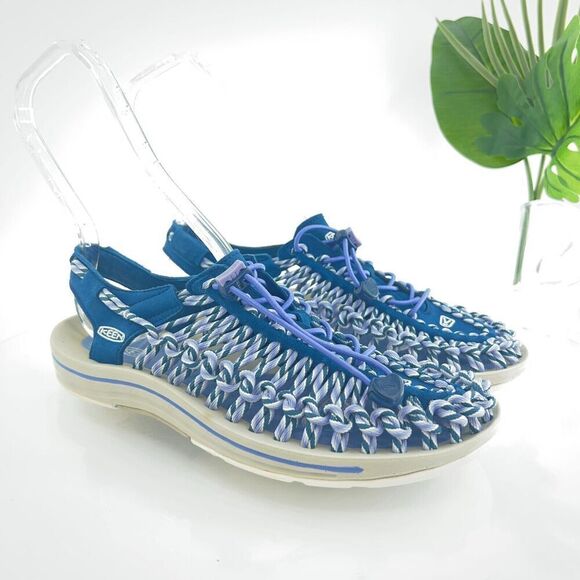 Keen Men Uneek Sandal Size 8.5 Bungee Cord Woven Slip On Blue Outdoor Hike Sport