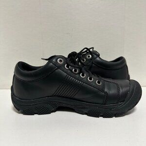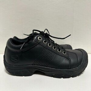• The perfect fit for all-day comfort on the job, the PTC Oxford features a slip resistant outsole, and water resistant leather upper for comfort and wipe-clean convenience. • Inside, a plush KEEN.CUSH footbed made from PU, and memory foam cradles your foot in all-day comfort.