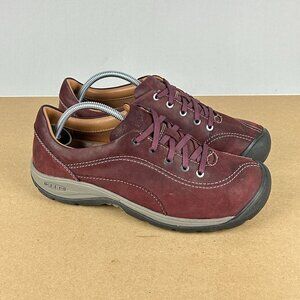 Keen Presidio II Leather Walking Shoes Womens 8.5 Wine Red Low Top Lace Up