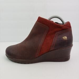 Keen Red Dahlia Womens Size 8 Red Leather Thermal Wedge Bootie Shoes 1015113