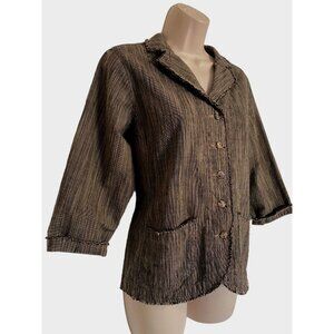 Keen Small Black Tan Blazer Button Down Raw Hem Fringe Pockets 3/4 Sleeve