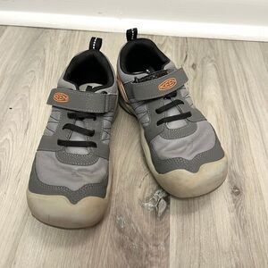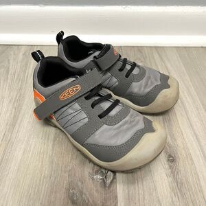 Excellent used Condition Boy’s Keen Gray and Orange Knotch Peak Lightweight Washable Sneaker Shoes in Kids Size 1