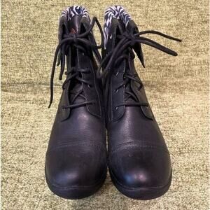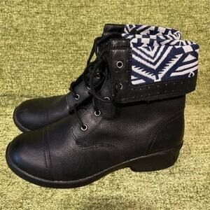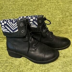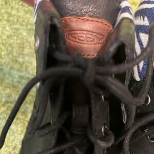 Keen Tyretre Black Leather Ankle Boot Blue Tribal detail Size 8.5