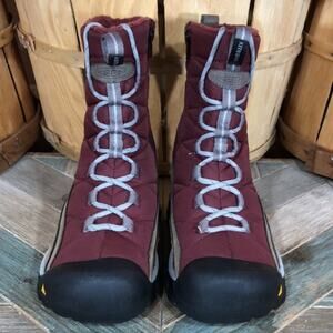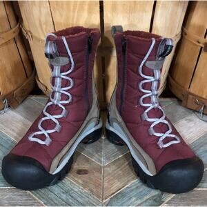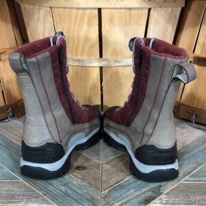 Keen Vail Tan Leather Red Insulated Waterproof Lace-Up Zip Winter Boots Womens 6