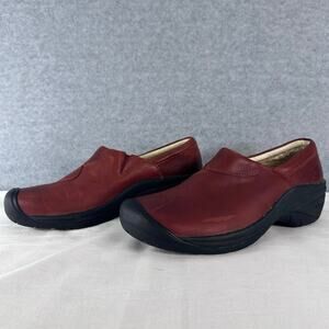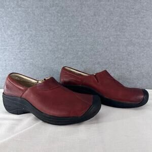 Keen Woman’s sz 9.5 Concord Red/Brown Leather Clogs Slip On Comfort