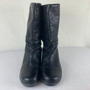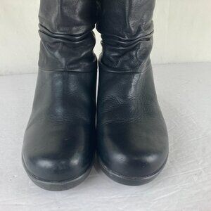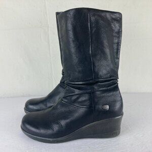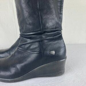 Keen Women Sz 9 Akita Wedge Slouchy Boots Black Leather Mid Calf Wedge Heel