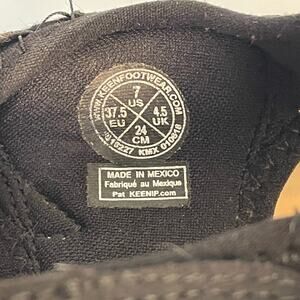 Keen women’s hiking sandals in size 7. Black color, closed-toe design, and secure bungee lace system. Great for water, hiking, walking, and everyday outdoor wear. No major flaws—gently used with normal wear to soles. Clean and ready to wear.