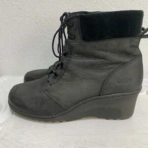 Keen Womens Akita Wedge Boot 9.5 Black Suede Leather Lace Up #1007689