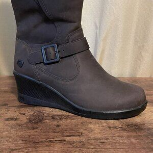 Keen Womens Keen of Scots Boot Sz 6 Brown Nubuck Leather Wedge Heel Fleece Lined