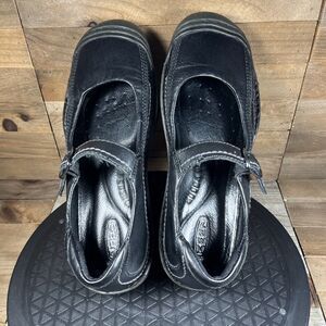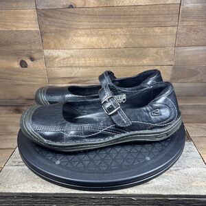 Keen Womens Size 8.5 Black Leather Slip On Mary Jane Ballet Flat Driving Shoes