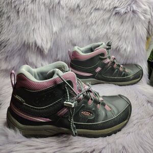 Keen Youth Kids Girls Size 4 Targhee Mid Waterproof Boot 1020131 Raven/Tulipwood