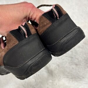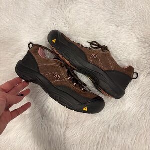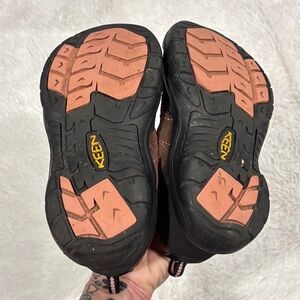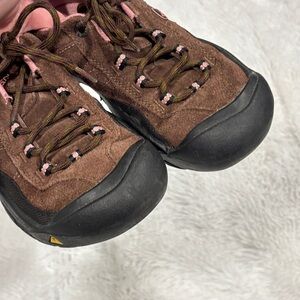 Keen brown and pink lace up woman’s youth hiking shoes size 6