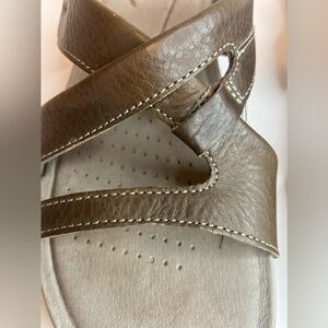 Keen~Brown Leather Criss Cross Strap Easy Slip-On Sandal~Rubber Outsole~Size 8.5