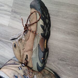 Left shoe lace strap is pulled off so top tier of lace will not be able to be tied as shown above