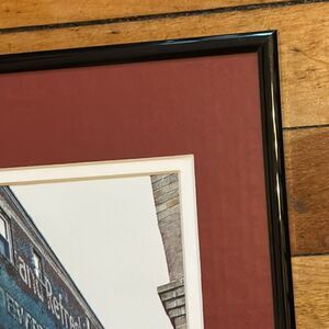 Beautiful little print of a popular mural in Keene NH (right off of Washington St, just off of the main street circle). The print inside looks like it could be rematted, but it’s still a very pretty print of a local gem.
