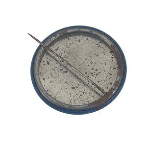 Rust and discoloration visible on the metal backing, with minor wear on the front surface. Diameter = 1.75 inches.