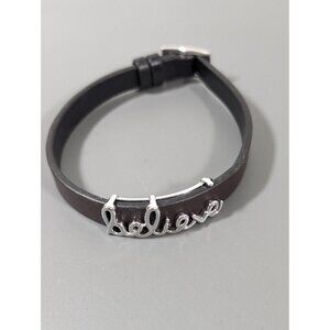 This reversible leather bracelet features a "Believe" charm, perfect for adding a touch of inspiration to any outfit. Its brown and black design offers versatile styling options for any occasion.