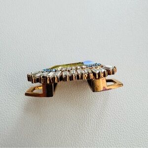 Surrounded by rows of shimmering clear baguette crystals and a gorgeous blue crystal accent border.