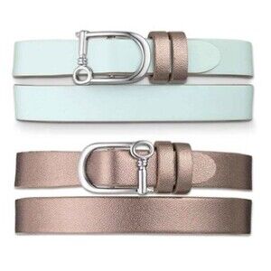 Keep Collective Double Leather Band Charm Bracelet- Mint/Steel Grey - New In Box