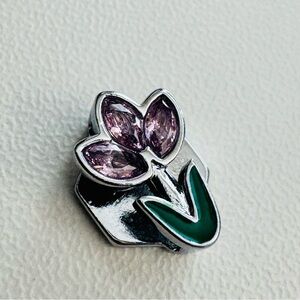 Celebrate spring with this adorable Keep Collective floral charm! Features soft pink marquise crystals forming a flower and green enamel leaves, all set in a shiny silver-tone base.
