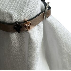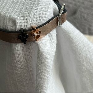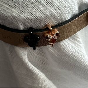 Keep Collective 8 inch leather bracelet. Rose Gold. Includes 2 Disney charms - Mickey and Minnie. Clasp has Micke Ears. Etched into rose gold side is Disney’s saying “If You Can Dream It You Can Do It”. Back side is solid black etched with Mickey Mouse silhouette. Excellent preowned condition.