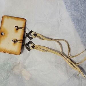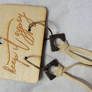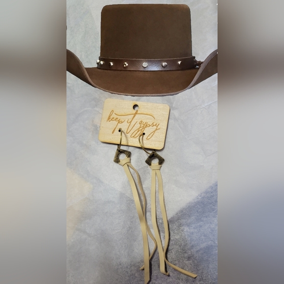 Keep It Gypsy Leather Tassels Dangle Earrings Sand Antiqued Hoops Rustic Metal