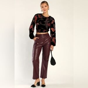 Lulus Keep It Trendy Burgundy Vegan Leather Straight Leg Pants