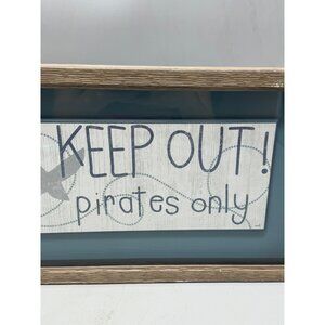 Keep Out Pirates Only Shark Wall Art Framed 18"x9" Crystal Art Gallery READ