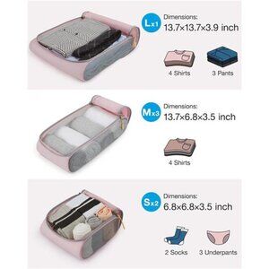 *3 Different Sizes(L×H×W) - Large size (13.7’’×3.9’’×13.7’’) for jackets, sweaters, trousers. Medium size (6.8’’×3.5’’×13.7’’) for shirts, T-shirts, shorts. Small size (6.8’’×3.5’’×6.8'') for underwear, socks. Different sizes can be used for different packing purpose and allow you to pack more clothes. Make your luggage clean and tidy.